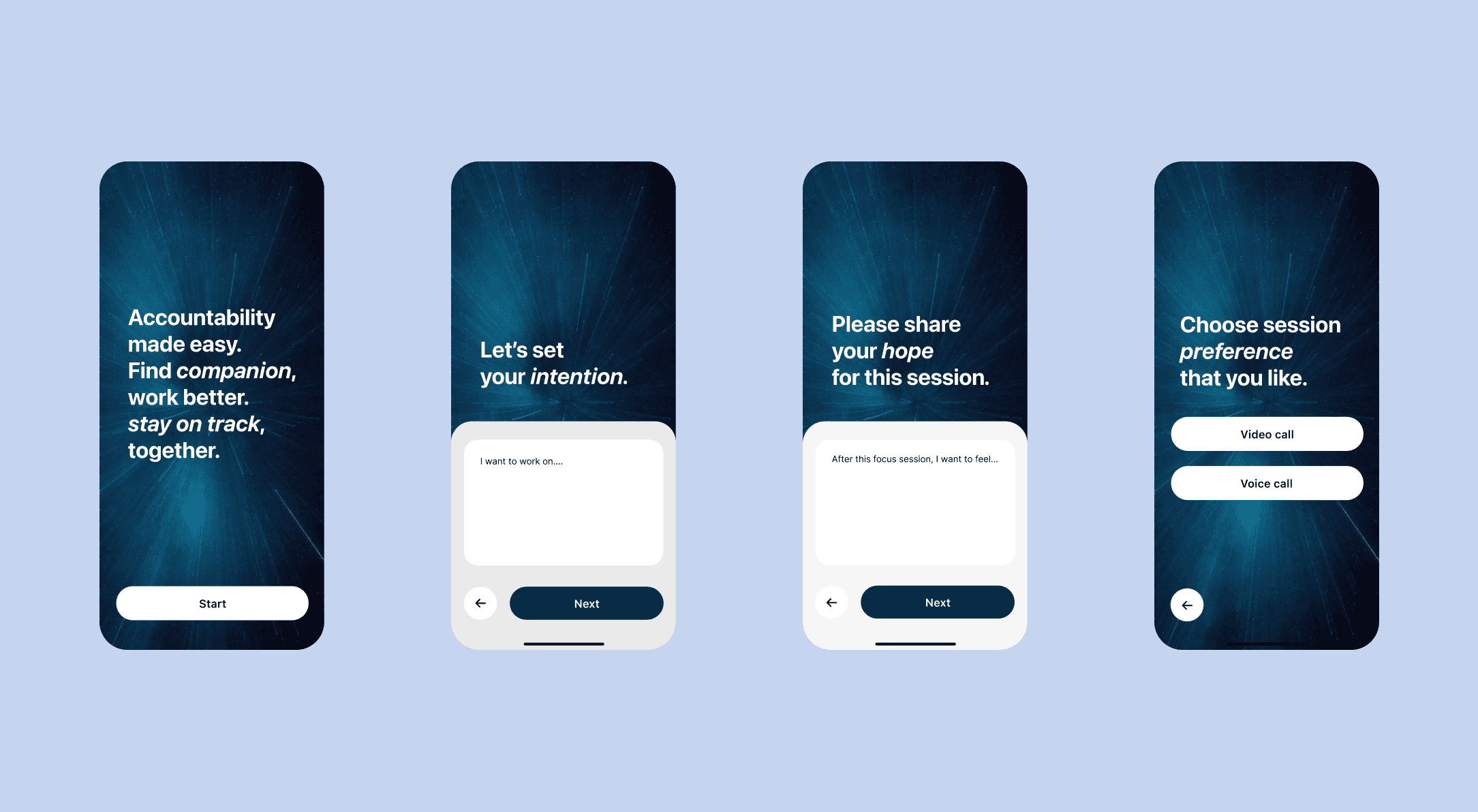 Low-Pressure Interaction: Users choose between voice or video and can mute themselves at any time. The focus is on presence, not conversation.